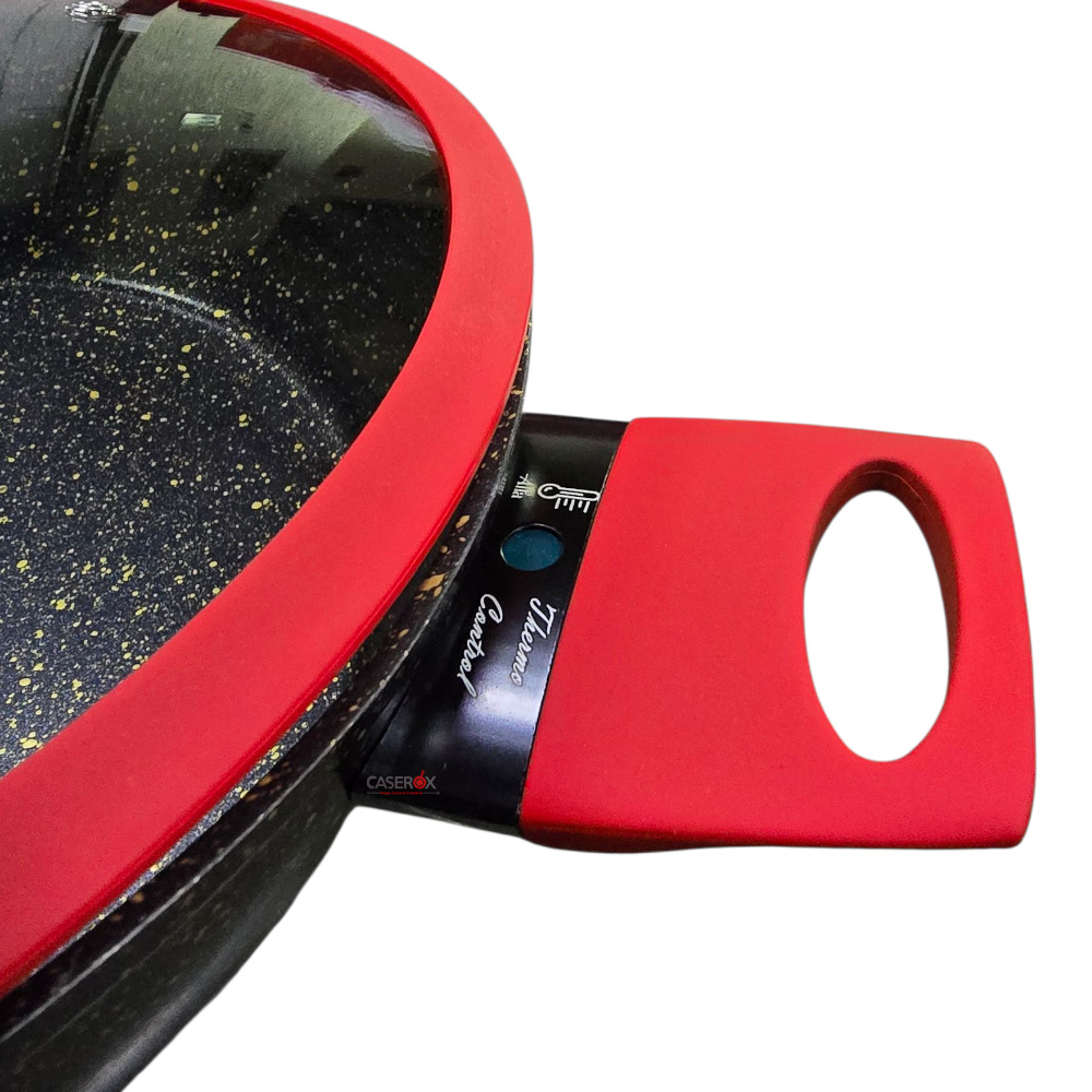 Set 3 Arroceras Aluminio con Antiadherente 24, 28 y 32cm Rojo – KITCHEN KING